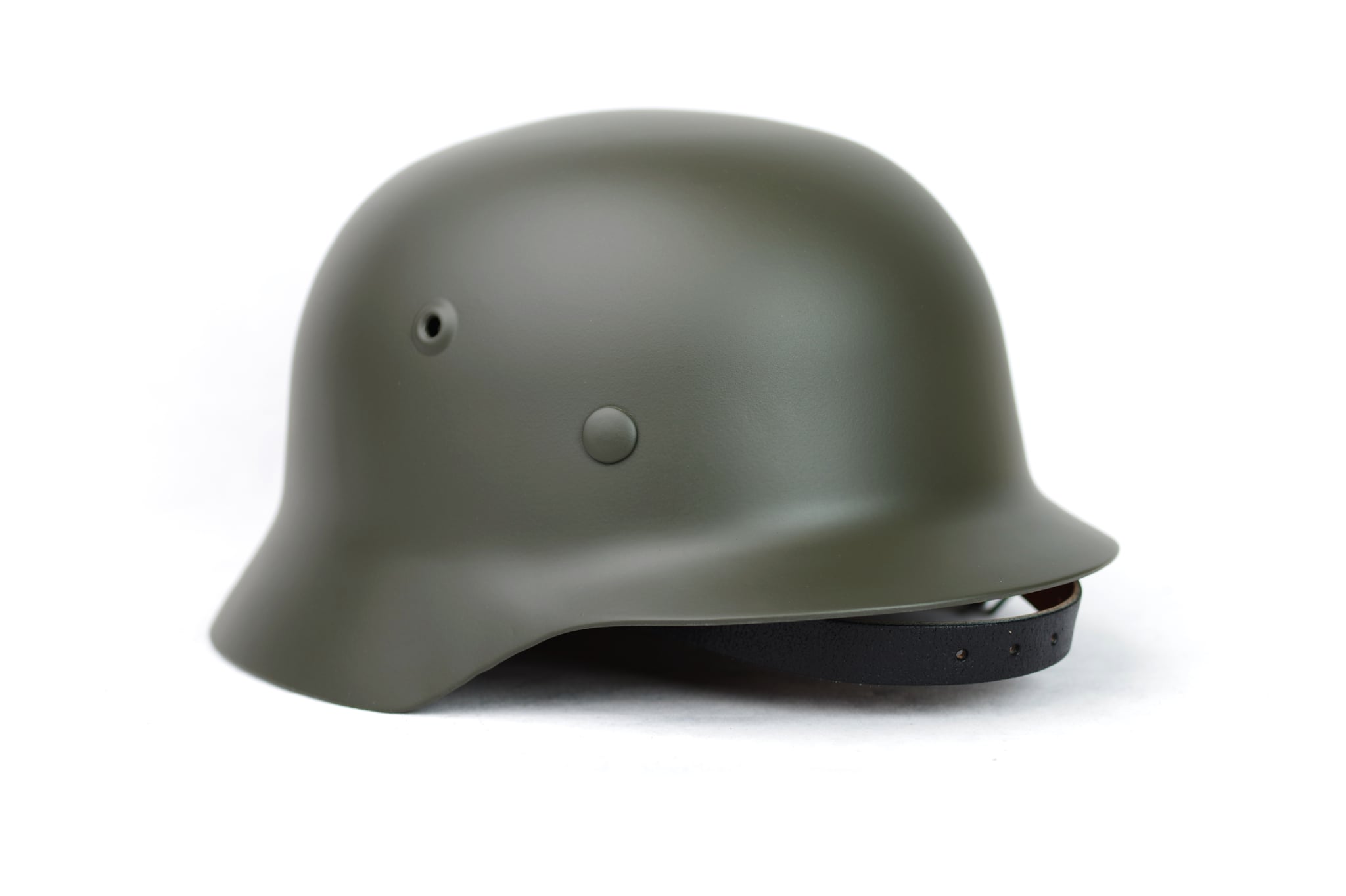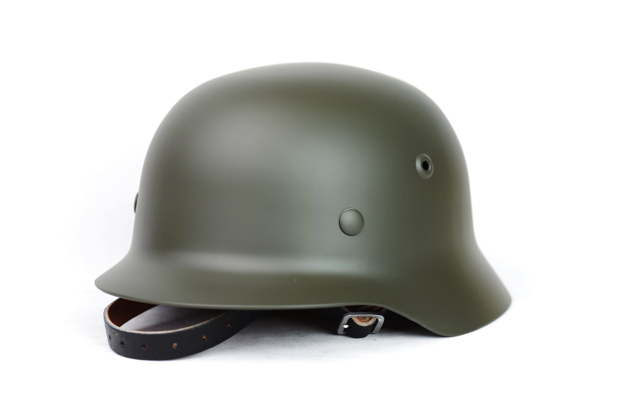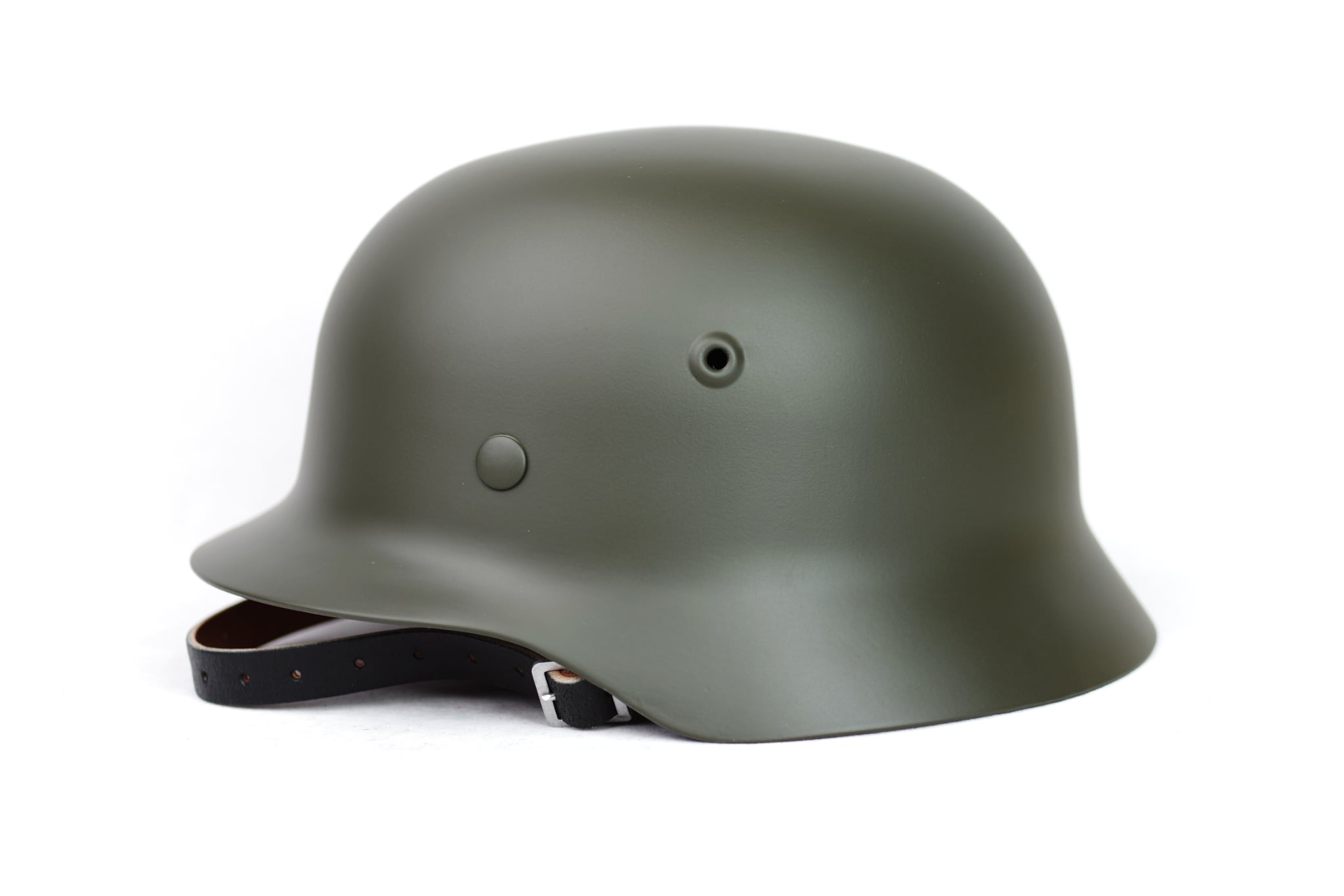 Perfect for reenactors, filmmakers, and military history enthusiasts, this helmet adds a realistic touch to any WWII setting. The interior is fitted with a leather-style liner and an adjustable chin strap for comfort and wearability.