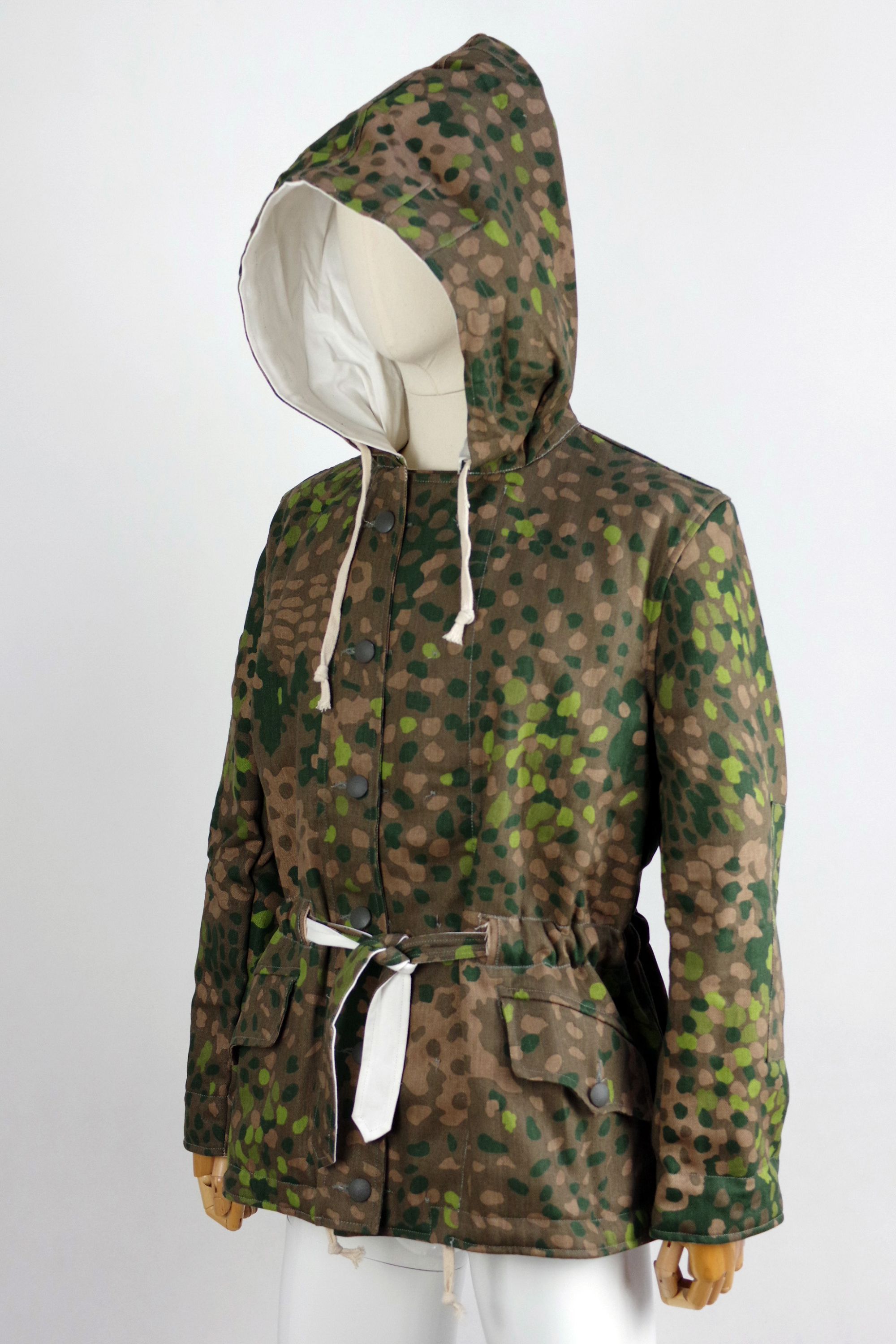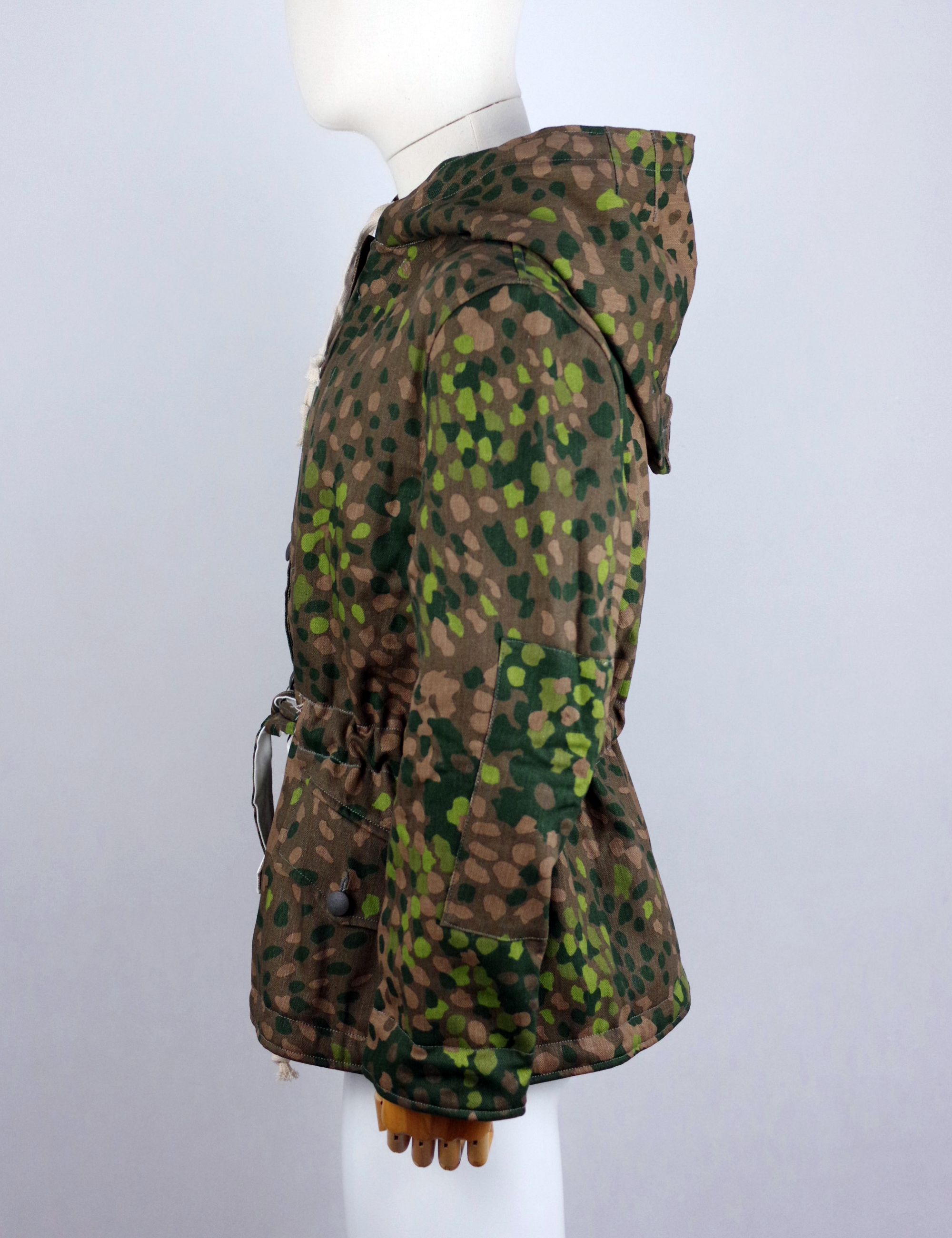 Replica of the WWII-era parka featuring the distinctive DOT44 camouflage pattern. Designed for functionality, this high-quality parka is perfect for reenactors, collectors, and military history enthusiasts.